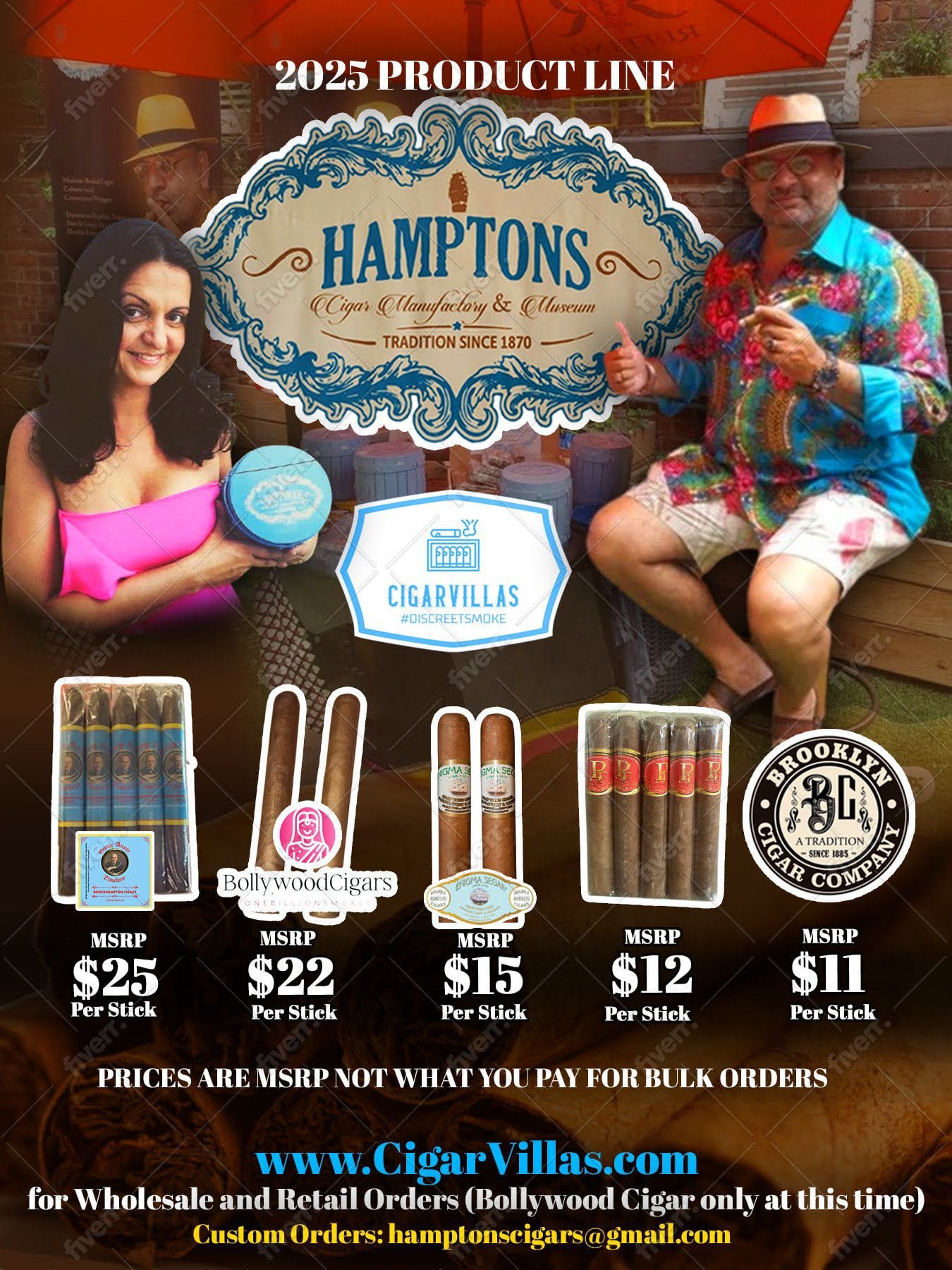 I enjoyed a couple of years spending time with Adina and her friends in the Hamptons, lounging in her pool, dreaming up a smoke. And with help from the Sag Harbor Historical Society, the Enigma Segar was born! It became an instant hit, and over the last 10 years, my factory in Tamboril, Dominican Republic and my manager from day one – Jose – have produced thousands of high quality cigars. These mild to medium Connecticut blend smokes have been smoked by celebrities and paupers from Delhi to Dubai!